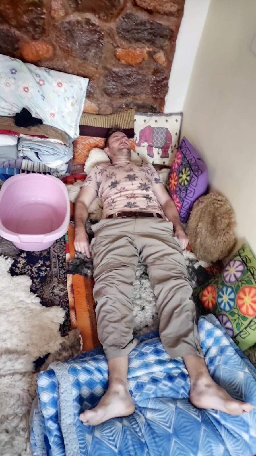 - Descansas en una cómoda cama de alfombras y entras en un estado meditativo de 40-60 minutos hasta que la medicina se hace presente.